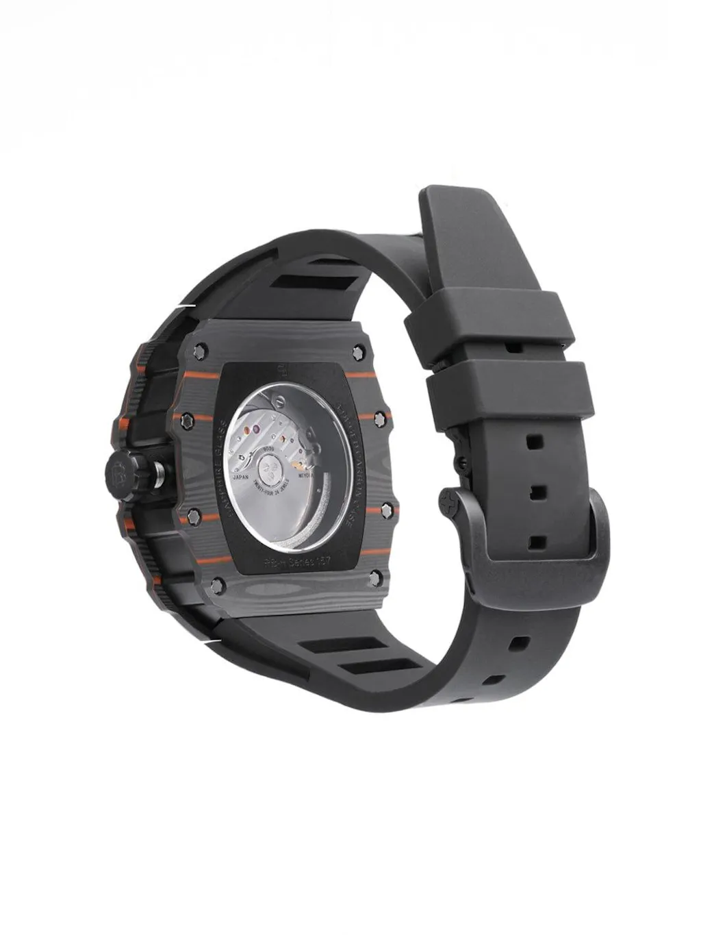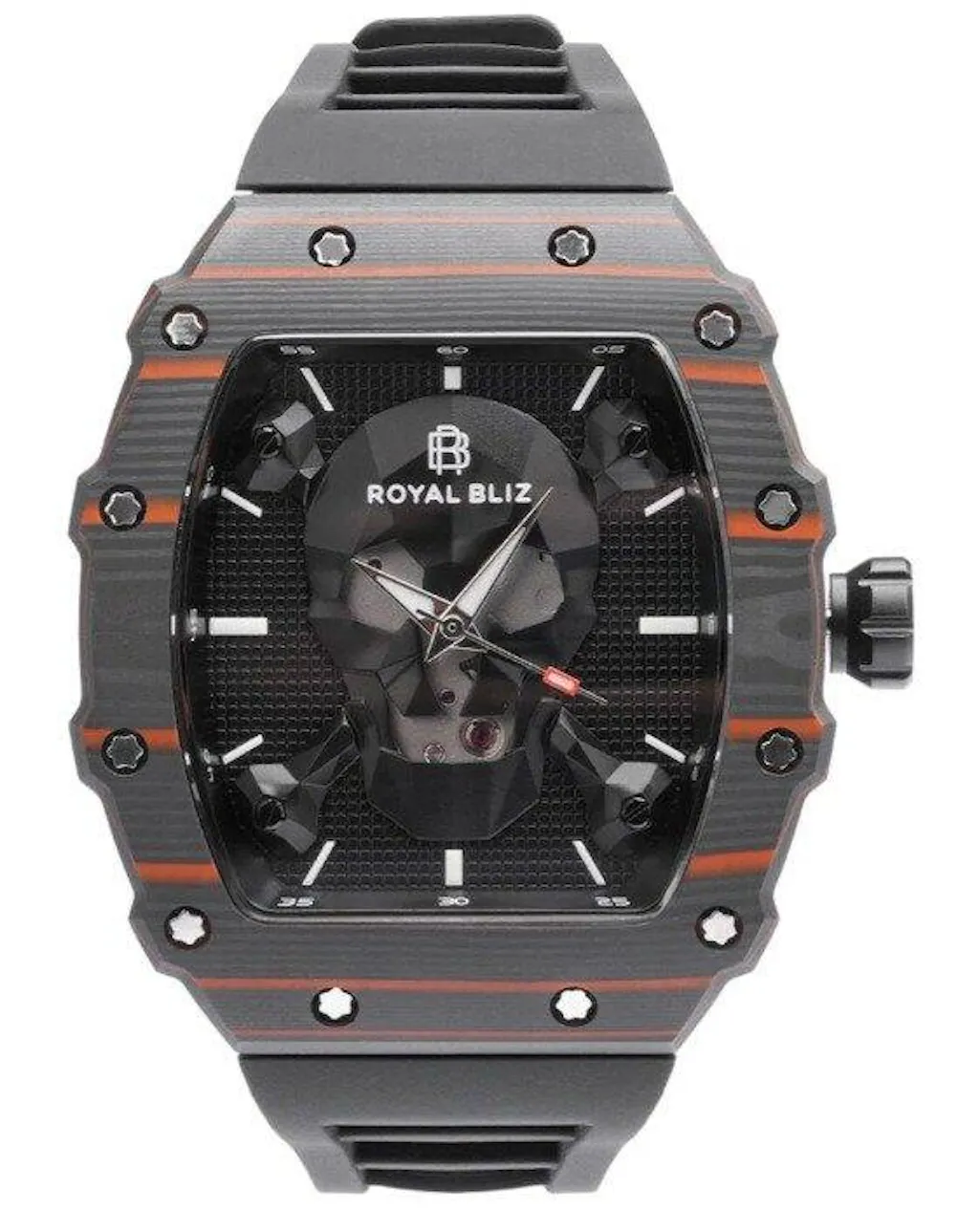Introducing the RB Royal Bliz CF CRAFT Watch - a watch that stands out with its unique blend of materials and design. The watch's Tonneau-shaped case is crafted from 316L stainless steel and Carbon fibre, which not only guarantees durability but also exudes a distinct aesthetic appeal.